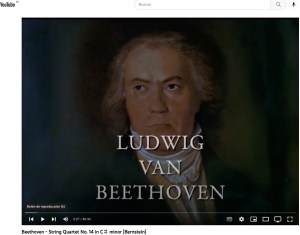 Hace un par de años, en el modo antes descrito, me encuentro con una versión para orquesta de cuerdas del cuarteto num. 14 opus 131 en do sostenido menor de L. van BEETHOVEN. Sus intérpretes, ya me auguraban como así fue, un éxito rotundo: FILARMÓNICA DE VIENA dirigida por LEONARD BERNSTEIN en el Konzerthaus vienés y en el año 1977.