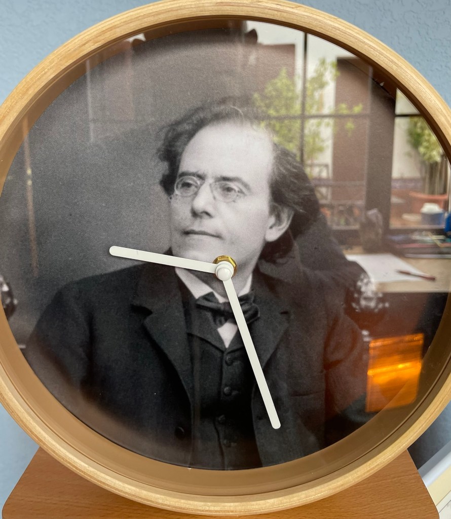 No hay duda para mí que, algunas de las melodías populares que en plena naturaleza austriaca oía Mahler de Farkas le inspiraron para algunas de las obras de su amplio catálogo de este ilustre judío que a pesar de sus reiterados fracasos no cesaba de decir: “ Mi tiempo llegará” y claro, llegó y hoy en tono de “broma” muestro como su rostro marca el tiempo de uno de sus seguidores en mi estudio.